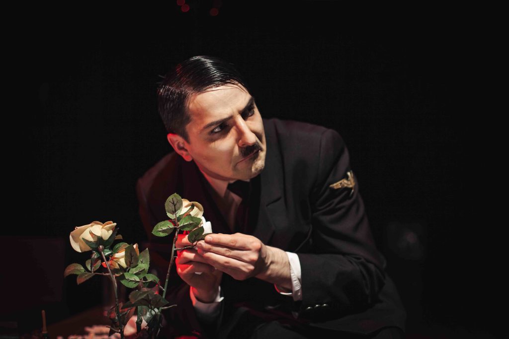 „Adolf Hitler” conduce Germania între 1933 – 1945. Un șir de factori, evenimente și idei îi creează personalitatea, transformându-se în figura care a declanşat al Doilea Război Mondial și a înfăptuit exterminarea etniilor în masă. În ultimele zile de război, retras în buncărul personal, își joacă actul final în totală intimitate. Obsedat încă de „complexul oedipian”, care i-a întunecat copilăria, poartă un dialog cu mama lui, unica fiinţă care a avut încredere în steaua lui și care îl alinta Adi. Fără nici o remușcare sau căință, nu realizează dezastrul pe care îl trăiește, nu-l sperie apropierea înfrângerii Germaniei sau apropierea propriului sfârşit, ci continuă să fie fascinat de propriul destin.”