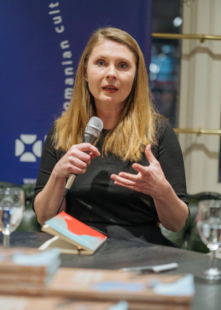La eveniment, alături de scriitoare, au vorbit traducătoarea Monica Cure, editorul american Will Evans și directoarea Institutului Cultural Român din Londra, Aura Woodward.
