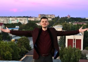 Damian Spinei, în acțiune, la filmările videoclipului dedicat orașului său natal, Drochia