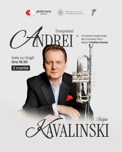 La Sala cu Orgă, de la ora 18:30, va avea loc un concert susținut de trompetistul Andrei Kavalinski (Belgia), alături de Orchestra Națională de Cameră, sub bagheta prim-dirijorului Cristian Florea. Programul include „Noapte transfigurată”, op. 4, de Arnold Schönberg, Suita nr. 2 în Re major („Water Music”) de George Frideric Handel, precum și două concerte pentru trompetă semnate de Raymond Planel și Giuseppe Tartini.