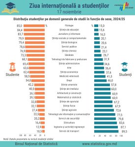 Ziua de 17 noiembrie a fost declarată oficial Ziua internaţională a studenţilor în anul 1941, de către Consiliul Internaţional al Studenţilor, pentru a comemora evenimentele din 1939 desfăşurate la Praga. În acest context, Biroul Național de Statistică al Republicii Moldova a făcut publice ultimele statistici cu referire la studenții din țara noastră.