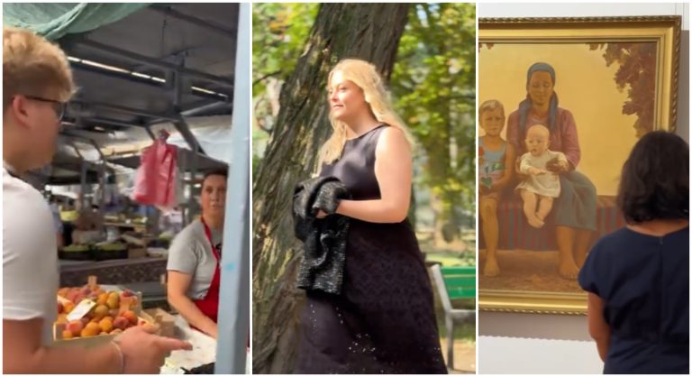 Însoțiți de zâmbete și voie bună, aceștia au colindat mai multe locuri simbolice din Chișinău – Piața Centrală, Muzeul Național de Artă și Parcul Central – unde au purtat discuții doar în română.