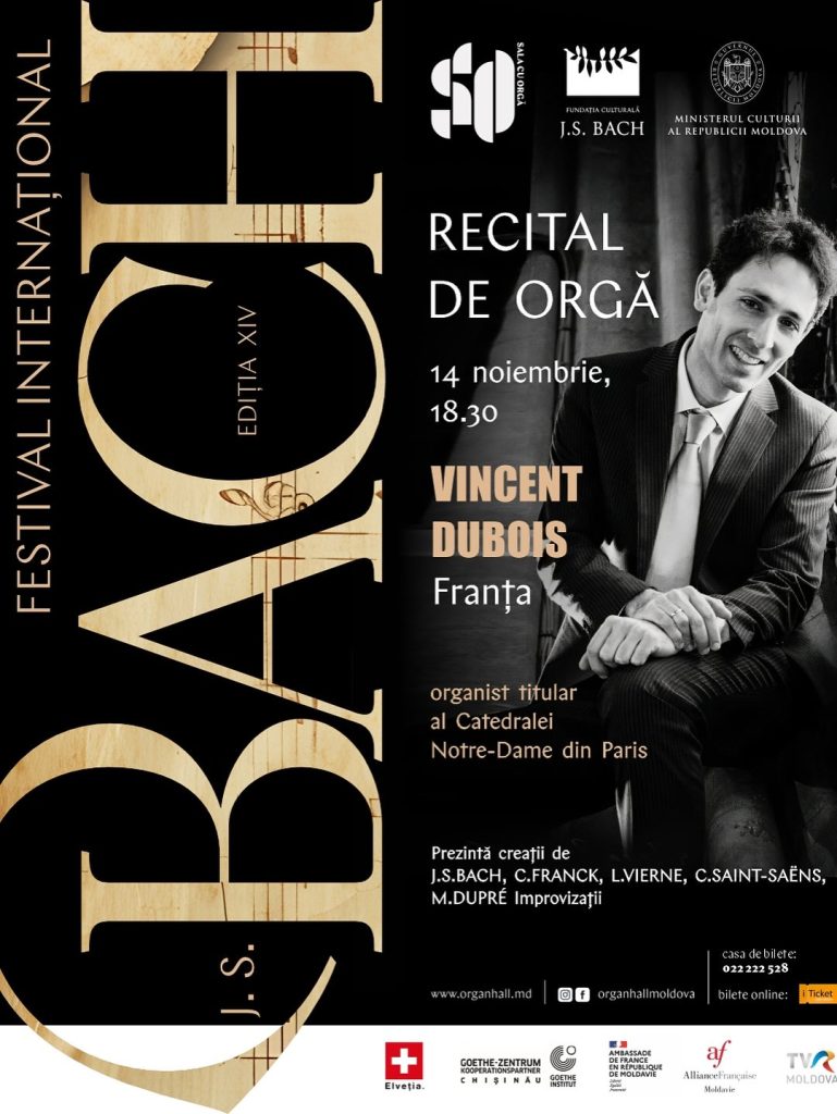 Deschiderea festivalului va fi marcată de prezența unuia dintre cei mai apreciați organiști ai lumii – Vincent Dubois, organist titular al celebrei Catedrale Notre-Dame din Paris, va susține pe 14 noiembrie un recital de orgă, în premieră la Chișinău. Programul va include lucrări de J.S. Bach, César Franck, Louis Vierne, Camille Saint-Saëns și Marcel Dupré, precum și improvizații realizate în stilul său caracteristic, care i-au adus recunoaștere internațională.