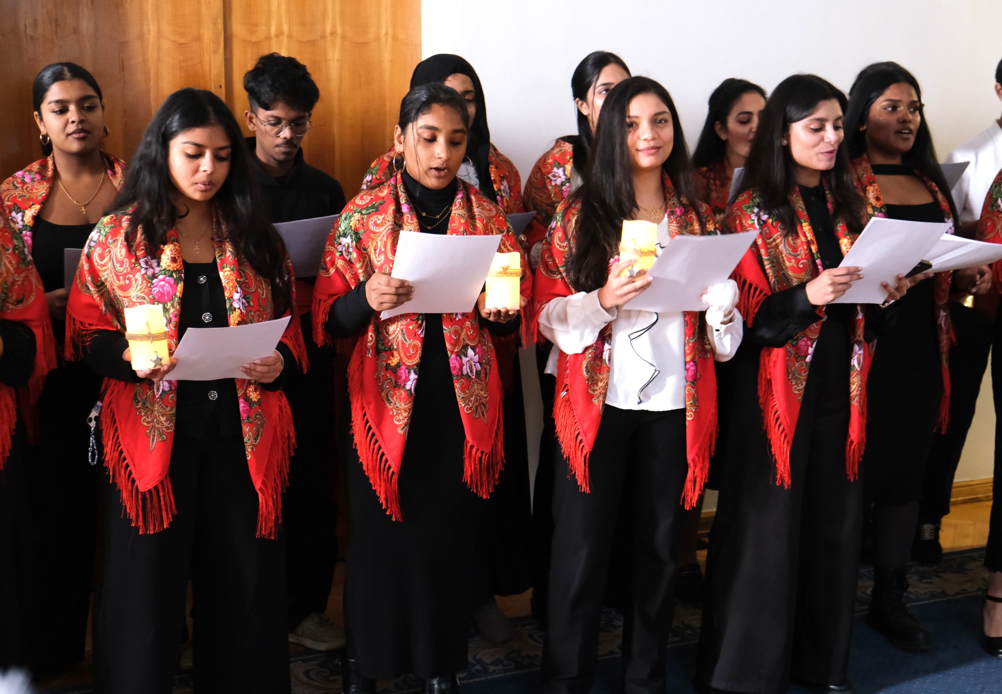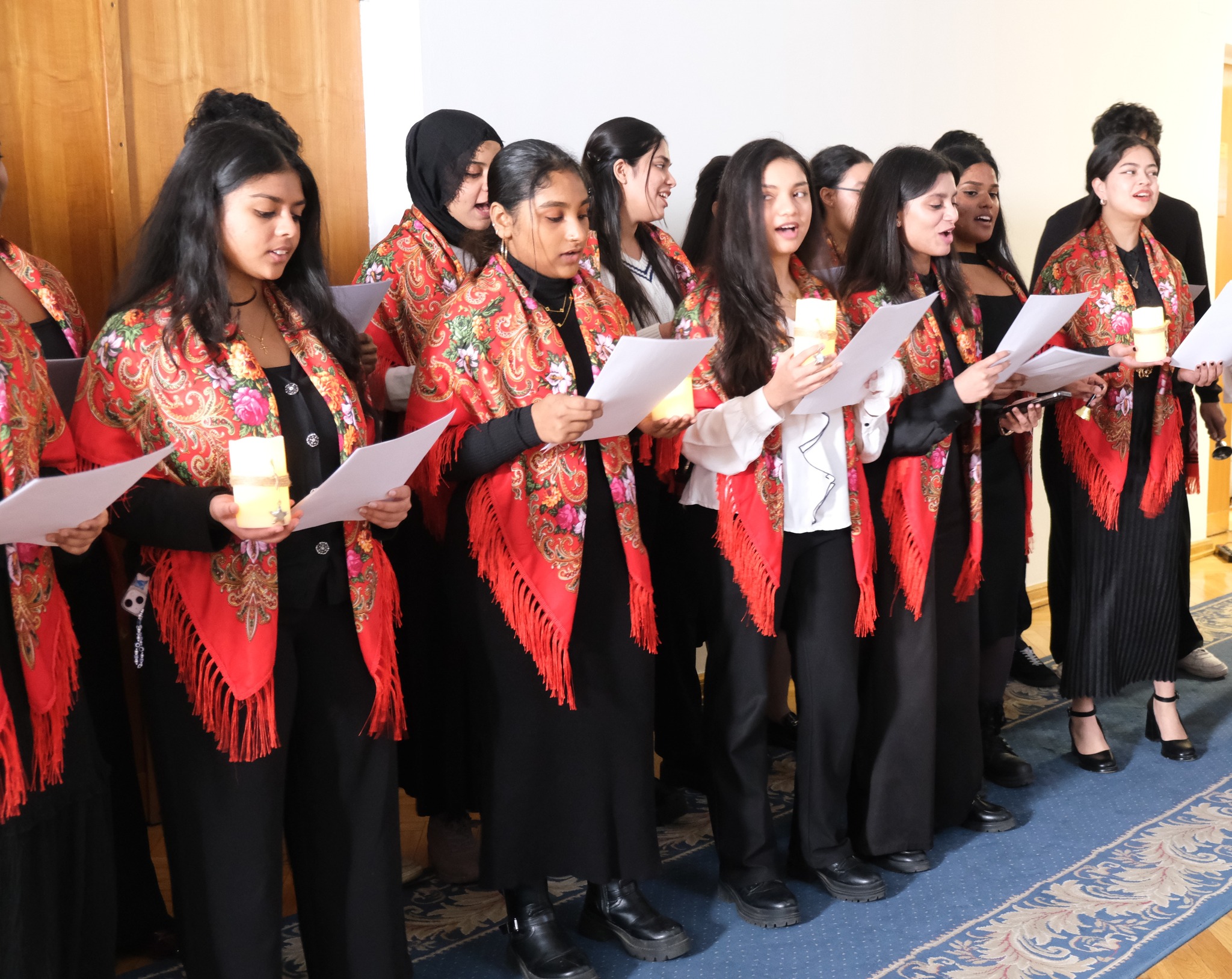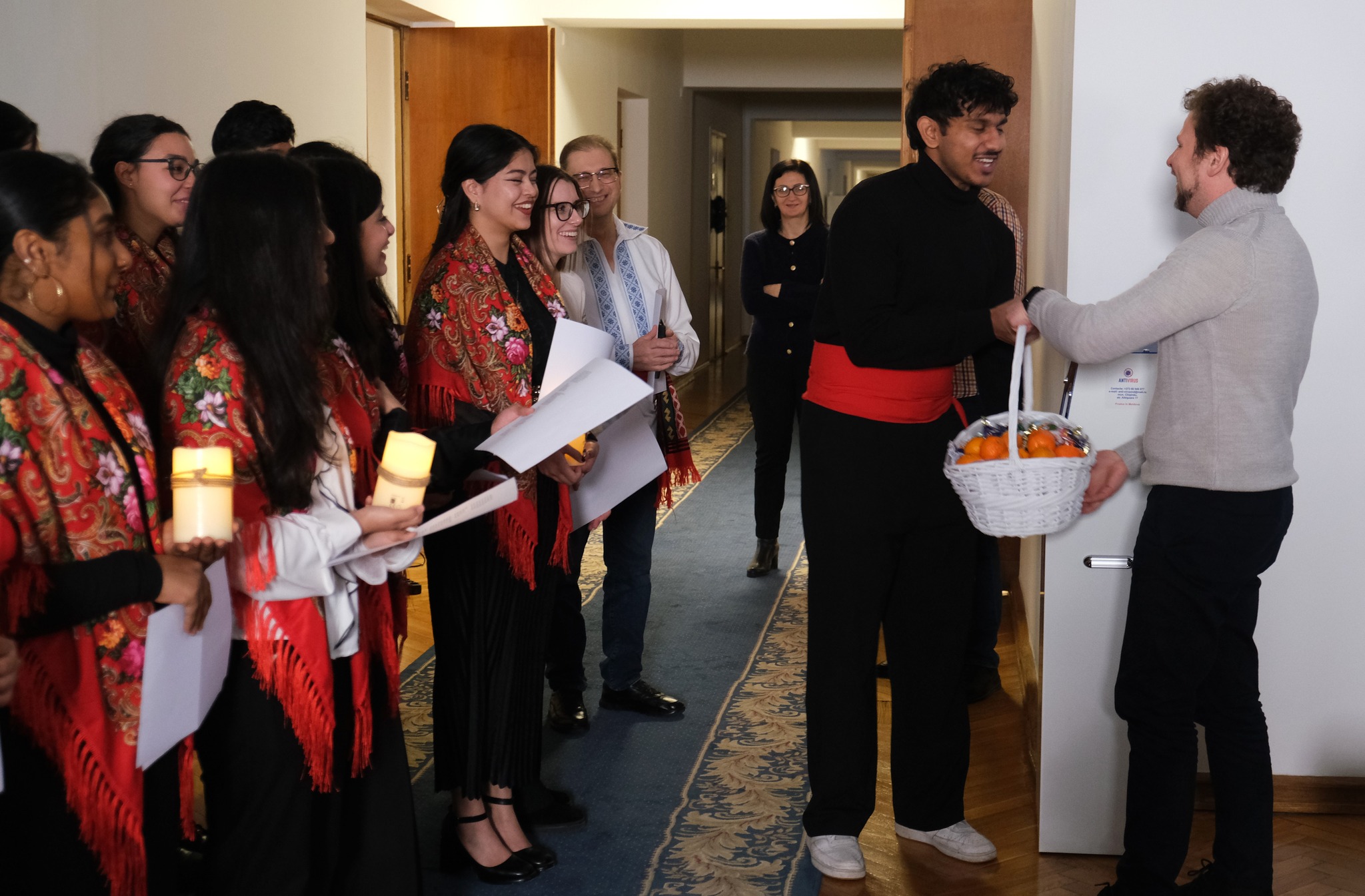 Vizita a fost realizată de ansamblul etnofolcloric al studenților internaționali, format în mare parte din tineri originari din India, alături de trei studente din Tunisia. Aceștia au interpretat colinde tradiționale românești, iar momentul artistic a fost coordonat de conducătorul ansamblului, Ecaterina Munteanu.