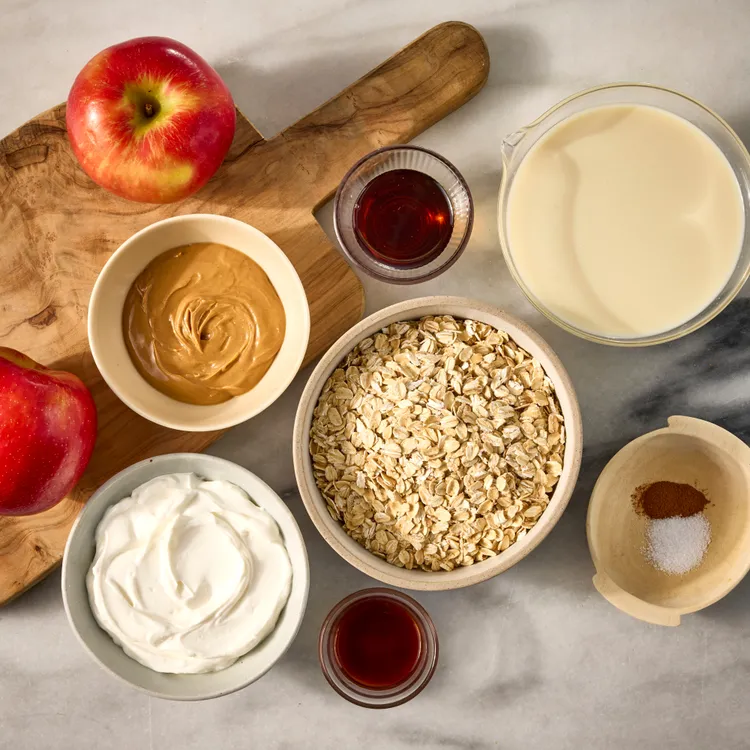 Merele aduc un echilibru ideal între dulce și acrișor și își păstrează textura chiar și după o noapte la frigider. Pe măsură ce ovăzul – bogat în fibre – se hidratează, absoarbe toate aromele cremoase, de nuci și subtil dulci, rezultând într-un mic dejun la pachet, hrănitor și delicios.
