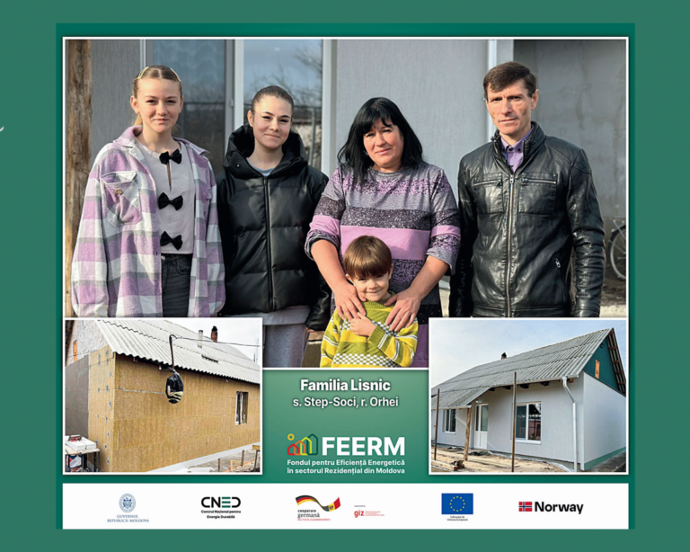 Familia Lisnic din satul Step-Soci, raionul Orhei, a reușit să-și transforme locuința într-un spațiu mai cald, mai eficient energetic și mai confortabil, reducând în același timp cheltuielile pentru încălzire. Schimbările au fost posibile datorită sprijinului oferit prin Programul de stat Fondul pentru Eficiență Energetică în sectorul Rezidențial din Moldova (FEERM), gestionat de Centrul Național pentru Energie Durabilă.
