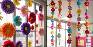 - Ghirlande din materiale reciclabile – carton, hârtie colorată, țesături refolosite.