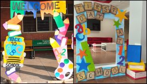 - Bannere reutilizabile – cu mesaje motivaționale („Bun venit!”, „Succes în noul an școlar!”) pe pânză sau carton reciclat.