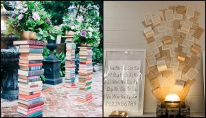 - Aranjamente din cărți vechi – turnulețe simbolice din manuale sau reviste, care pot transmite mesajul „Școala este sărbătoare a cunoașterii”.