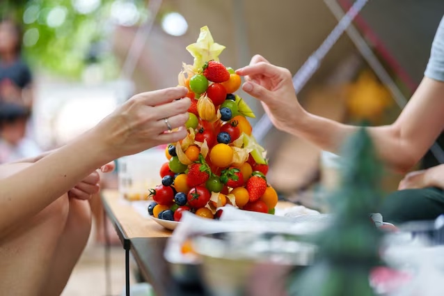 O altă rețetă-joc colorată: pere, kiwi, mandarine, mere verzi sau alte fructe de iarnă sunt tăiate și înșirate pe un bețișor, formând mici brazi comestibili. În perioada sărbătorilor, fructele tind să treacă pe plan secund, însă o prezentare spectaculoasă le readuce în prim-plan. Studiile arată că modul de prezentare influențează acceptarea alimentelor de către copii, deci nu este doar un detaliu estetic.