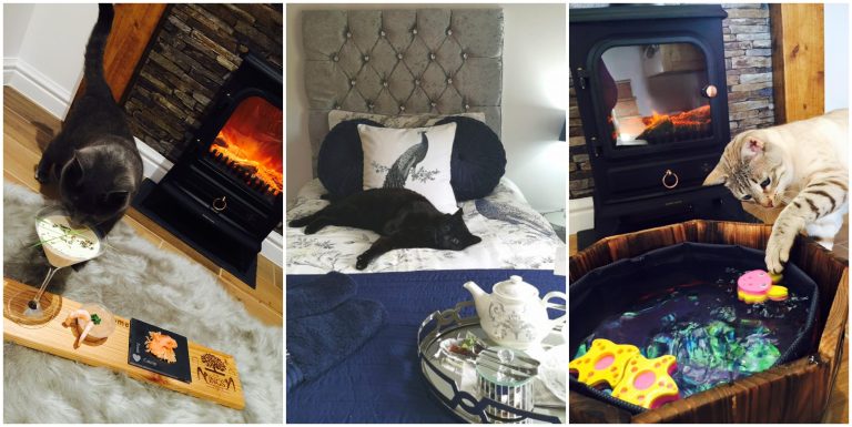 Printre facilități se numără televizoare cu ecran plat, băi cu lumânări, sesiuni de masaj, povești de noapte și chiar băuturi speciale pentru pisici, cum ar fi „pawsecco”.