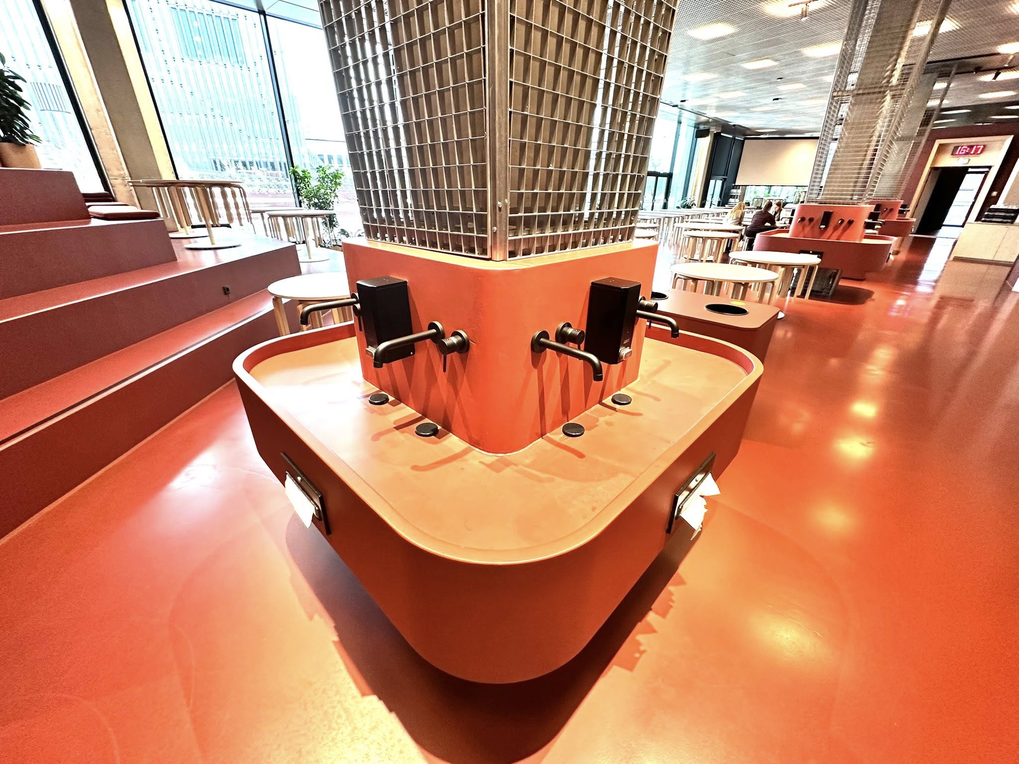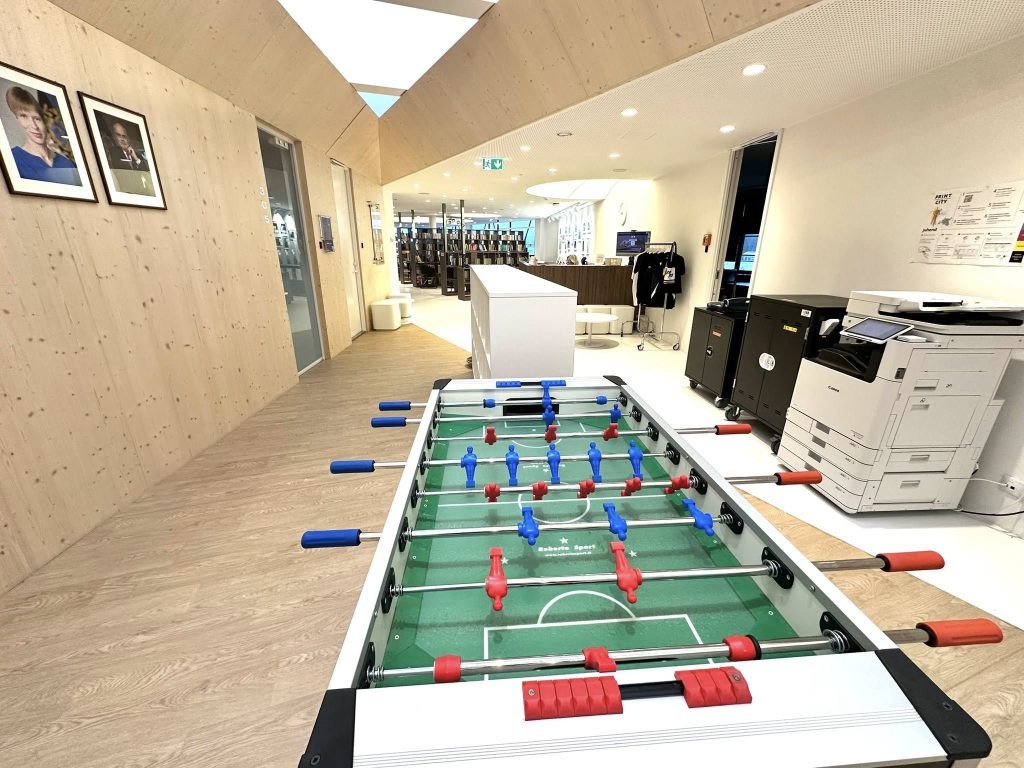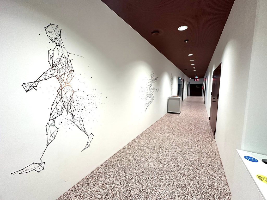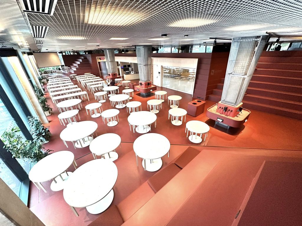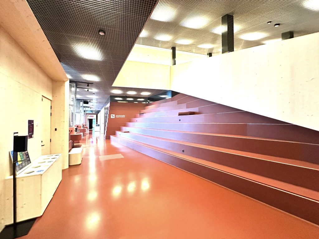 Clădirea școlii este înconjurată de spații verzi amenajate, cu echipamente de gimnastică în aer liber, terenuri de sport, mese de tenis de masă și zone de relaxare. Aceste facilități sunt accesibile comunității locale și vizitatorilor. De asemenea, există locuri de parcare pentru mai multe biciclete în aer liber.