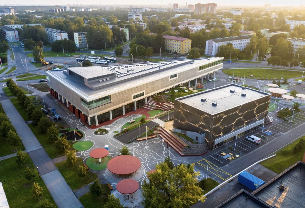 Clădirea principală și clădirea sportivă sunt conectate printr-o galerie subterană, cu un drum pietonal deasupra care duce spre campusul universitar TalTech. Cel mai semnificativ element arhitectural este vârful clădirii triunghiulare, aliniat atent cu ritmul clădirilor diferitelor instituții științifice de-a lungul străzii Akadeemia tee. La vârful clădirii se află biblioteca școlii, zone deschise pentru studiu și proiecte, precum și săli pentru consiliul elevilor.