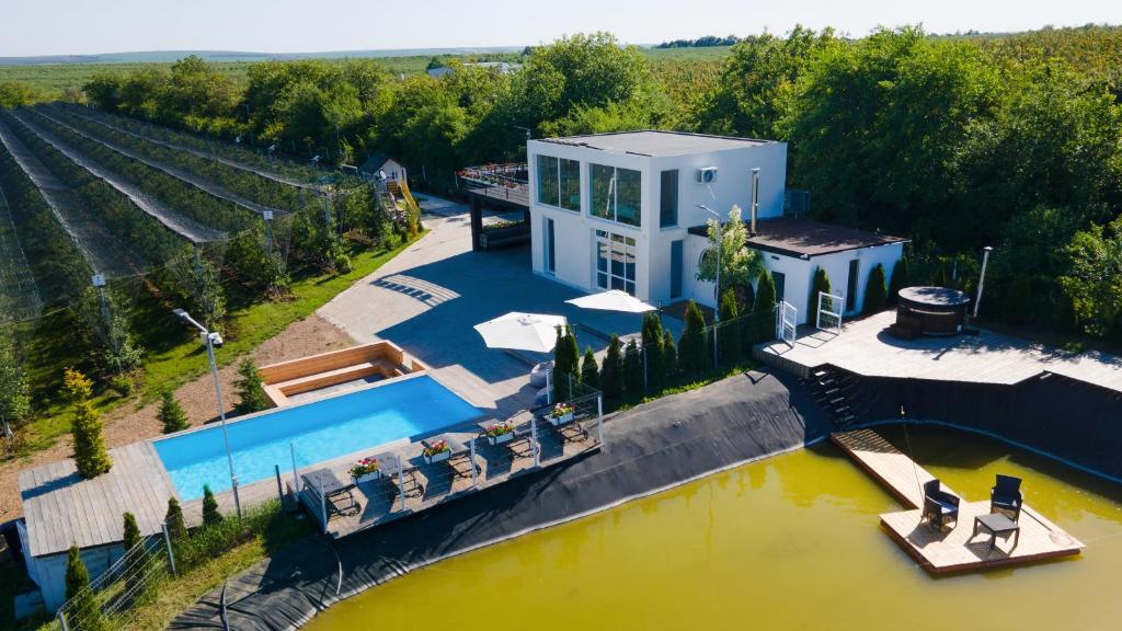 Pagina de Facebook a pensiunii, activă din mai 2025, descrie proprietatea ca un complex rural modern: livadă de meri, peste 500 de trandafiri, vilă cu trei dormitoare complet utilată, piscină, saună, lac pentru pescuit și loc de joacă pentru copii. „3 hectare doar pentru voi – fără vecini, fără aglomerație, de unde poate fi admirată toată Moldova”, se arată în prezentarea oficială.