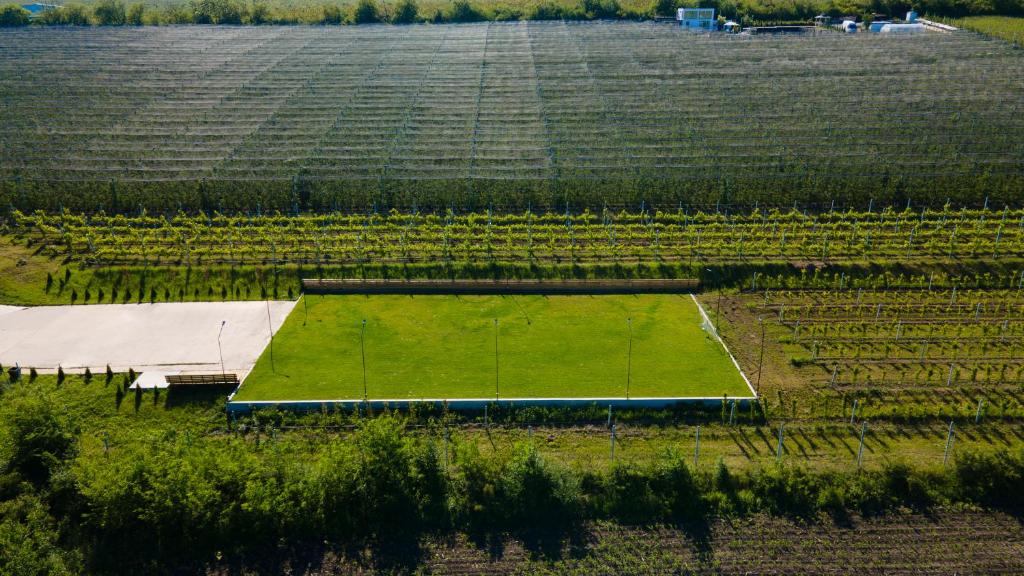 „Pe lângă livada de meri, „La Livadă” adăpostește cireși de soi italian de vară, viță de vie din soiul Jupiter, căpșuni parfumate și o mică zonă de pescuit amenajată din bazinul de acumulare – toate întreținute cu aceeași grijă și pasiune care se regăsesc în fiecare detaliu, de la arhitectura vilei până la modul atent în care este îngrijit fiecare rând de pomi”, se mai spune pe site-ul locuri.md.