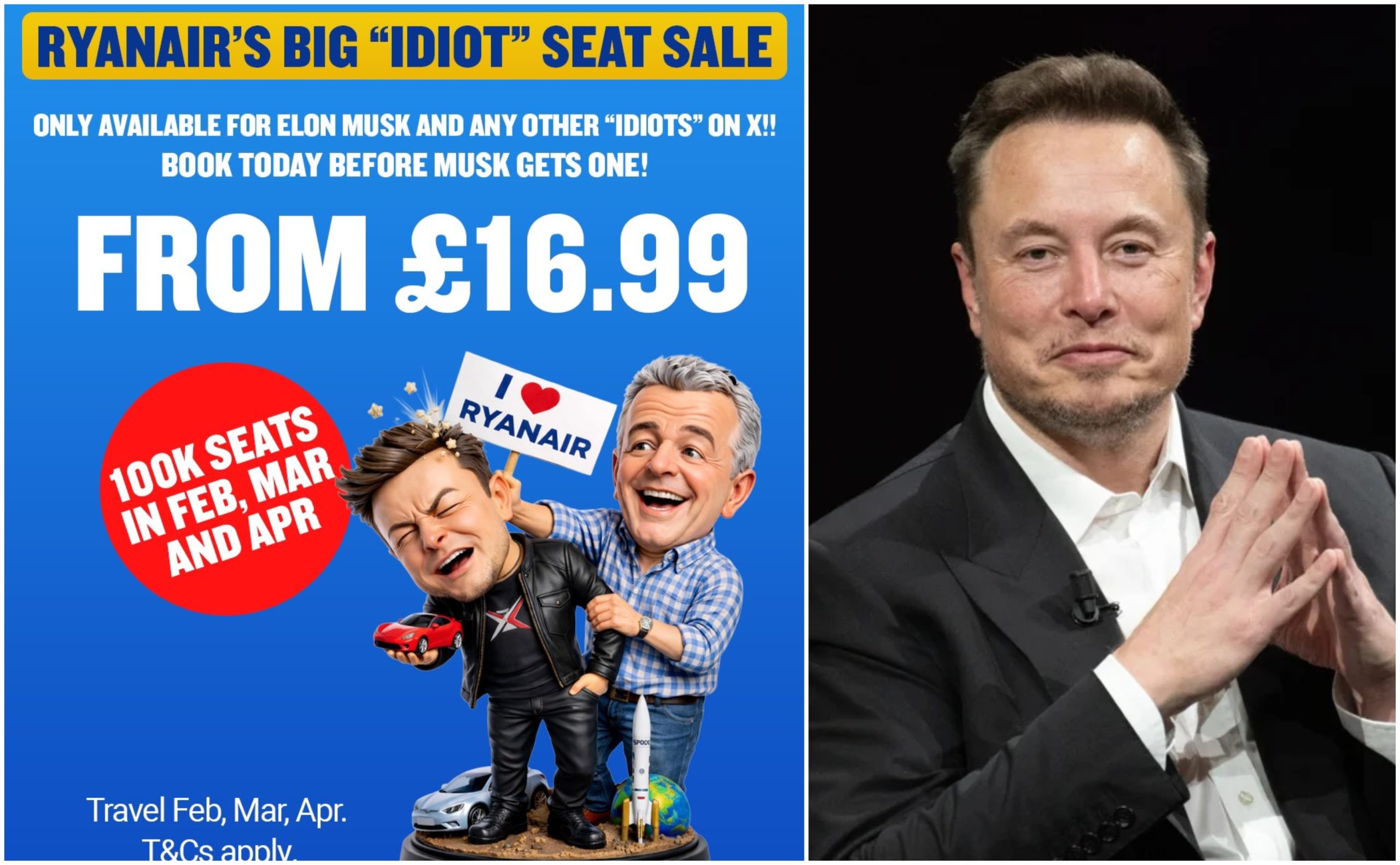 Compania Ryanair nu a ezitat să răspundă postărilor lui Elon Musk și a lansat o vânzare de bilete numită „Big ‘Idiot’ Seat Sale”, ca parte a conflictului dintre cei doi. Promoția include 100.000 de bilete într-o singură direcție la prețul de £16,99 pentru diverse destinații și este însoțită de o imagine umoristică cu caricaturi ale lui O’Leary și Musk, în care CEO-ul irlandez îl lovește pe Musk cu un panou pe care scrie „I love Ryanair”.
