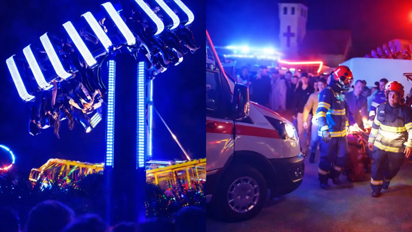 VIDEO | 14 tineri au rămas blocați cu capul în jos timp de 40 de minute într-un carusel din România