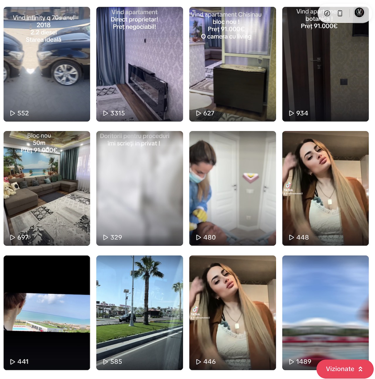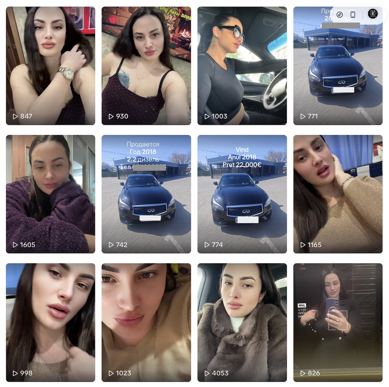 În contrast cu „viața grea” din Moldova despre care vorbește în unele dintre clipurile sale, tânăra a publicat pe TikTok mai multe anunțuri despre vânzarea unui automobil marca Infiniti (brandul de lux al constructorului auto japonez Nissan), produs în 2018. Pe unele anunțuri este afișat și prețul de vânzare: 22 de mii de euro. Cel mai recent anunț despre vânzarea automobilului datează din 27 decembrie 2025. De asemenea, tânăra publică frecvent pe TikTok și anunțul privind vânzarea unui apartament de 50 m.p., de la Botanica, pentru suma de 91 de mii de euro.