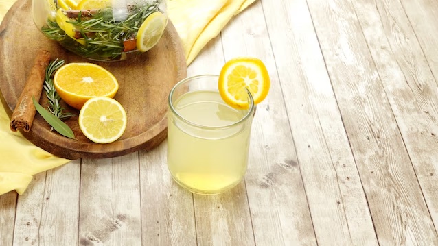 Preparare : Puneți rozmarinul, frunza de salvie, feliile de portocală și lămâie, scorțișoara și apa într-un ulcior. Aduceți ceaiul de plante la fierbere la foc mare. Serviți ceaiul de plante cu o linguriță de miere pentru a-l îndulci.