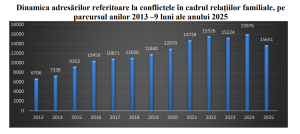 În primele nouă luni ale anului 2025, Poliția a înregistrat peste 15.600 de sesizări privind conflicte și comportamente violente în familie, cu aproape 30% mai multe față de aceeași perioadă a anului trecut. În peste o mie de cazuri, angajații Poliției s-au autosesizat, intervenind fără o plângere directă din partea victimelor, potrivit datelor prezentate de Inspectoratul Național de Securitate Publică.