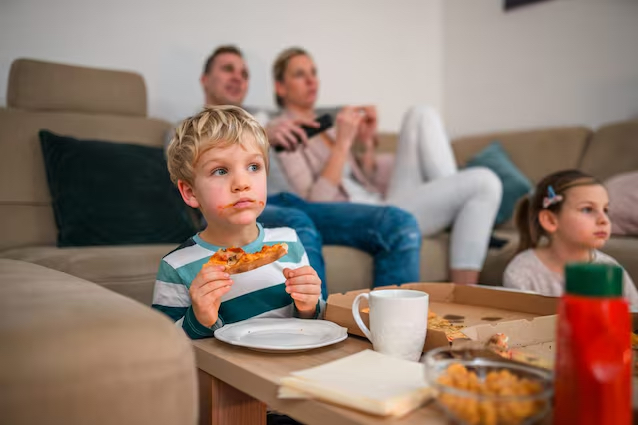 5. Înlocuiește, nu interzice – Dacă e o gustare la TV, alege opțiuni mici și controlate: fructe, popcorn de casă, porții limitate.
