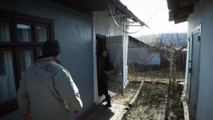 Împreună cu o echipă mobilă care repartizează ajutoare bătrânilor singuri, ajungem într-un sat în care din cei șase beneficiari de ajutoare, doi suferă de demență. Una dintre beneficiare nu mai era acasă – fusese internată în spital, după ce suportase un ictus cerebral. Pentru că locuia singură, a stat la podea timp de două zile, până au găsit-o vecinii alarmați, după ce au forțat ușa ca să intre în casă. Cel de-al doilea beneficiar, un bărbat de vreo 60 de ani, era îmbrăcat în palton, chiar dacă stătea pe pat în cămara în care locuiește, casa fiind încuiată de către rude.