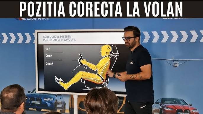 Reglarea volanului este la fel de importantă. Mâinile trebuie poziționate la „ora 9 și 3”, iar coatele ușor îndoite. Această poziție permite reacții rapide și control mai bun în situații critice.