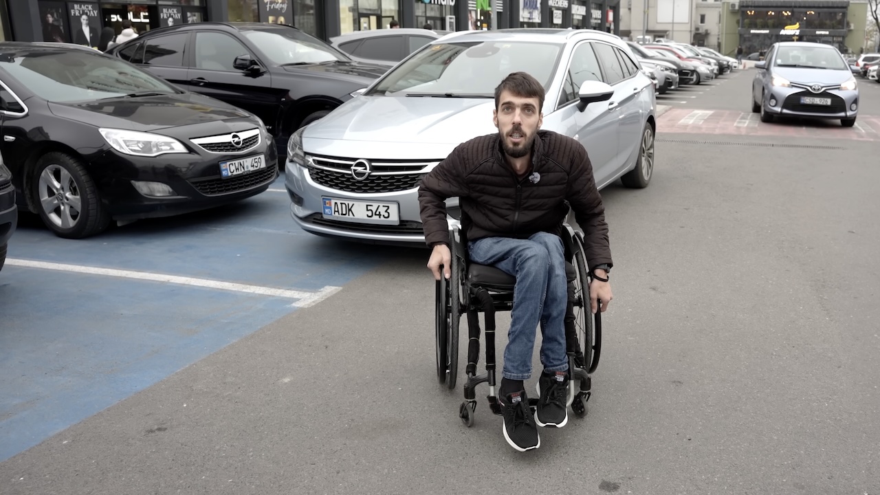 Olimp Ilievici, un tânăr care se deplasează cu ajutorul unui scaun cu rotile, a testat cât de accesibile pentru persoanele cu dizabilități sunt parcarea și baia unui cunoscut centru comercial din Chișinău. Ulterior, a testat și locurile de parcare destinate persoanelor cu dizabilități din zona străzii pietonale Eugen Doga din Chișinău. În ambele locații au fost depistate mai multe neajunsuri.